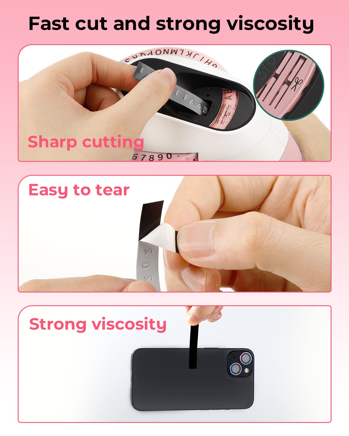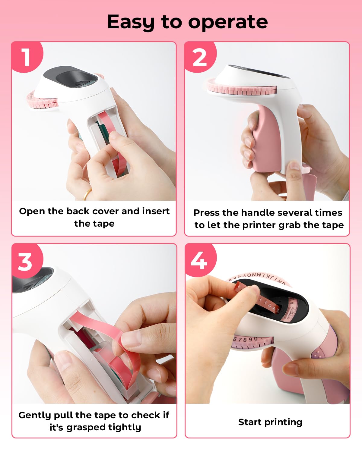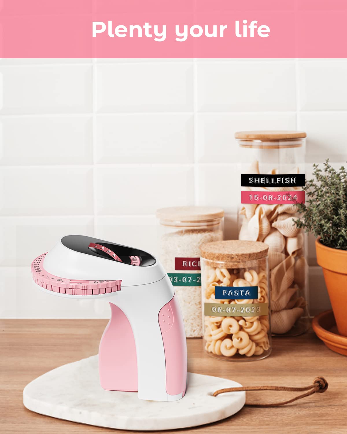- ? Pink embossed label maker compatible with 9mm Airmall, Phomemo,Motex, Dymo embossing label tape.Widely used for home storage and marking and office file storage and finishing, for you to produce elegant vintage embossed label tape. Enrich your life and make your work easier.