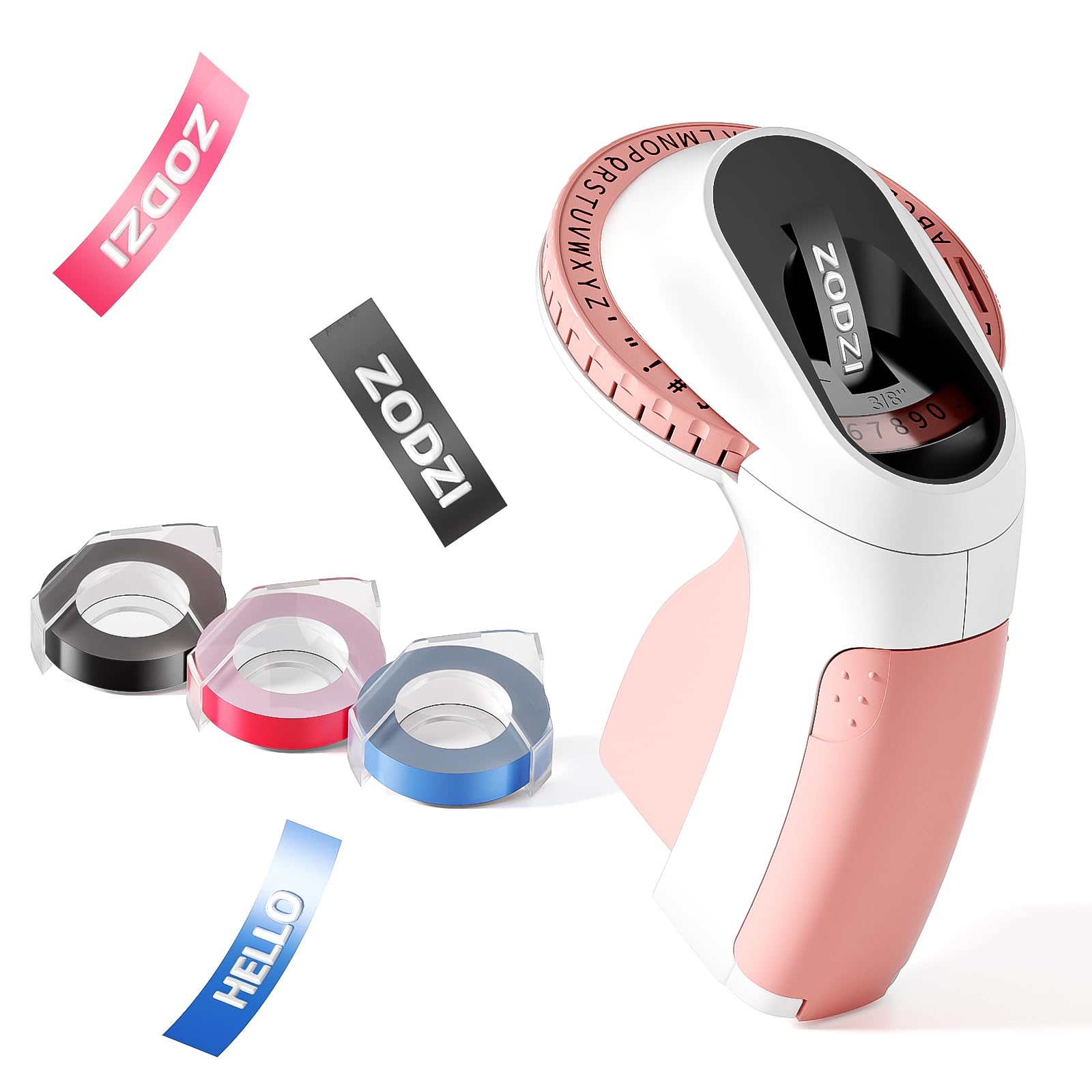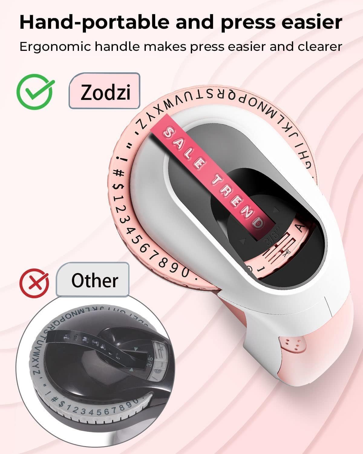- ? INKLESS Embossing Label Maker Machine with Tapes - Compared to ink printers, embossing label printers do not need batteries and ink, you do not need to worry about expensive ink and electricity.Zodzi embossing machine for you at any time to provide printing needs, is your more environmentally friendly and cost-effective choice.